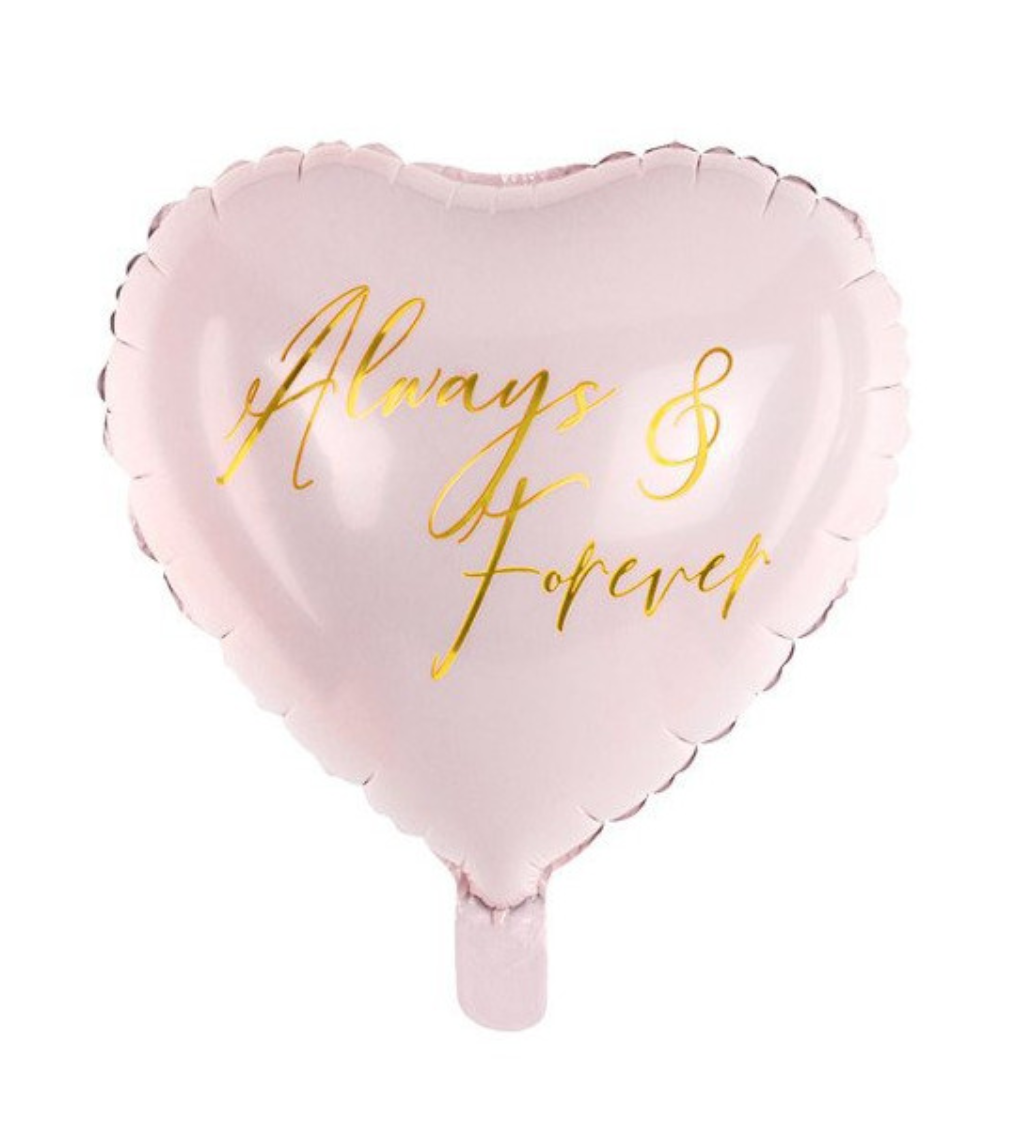 Růžový fóliový balónek ve tvaru srdce Always & Forever je možné využít na různých oslavách nebo na svatbě. Balónek má rozměry 45 cm.