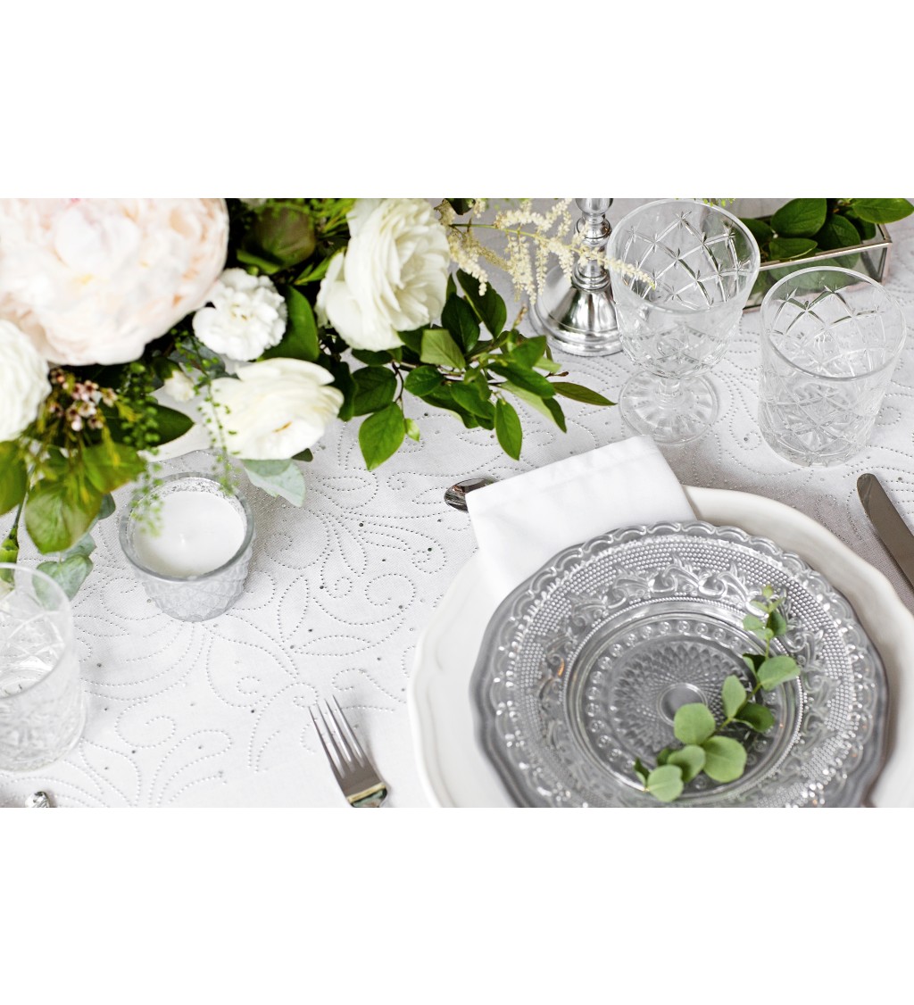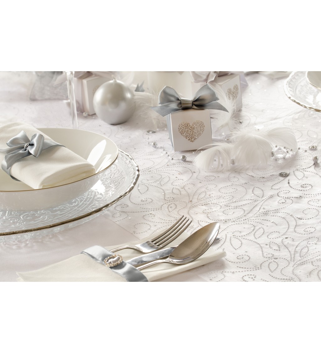 Pojmy spojené s tímto produktem: dekorace, bílá organza, vzorovaná, oslava, dekorace stolu, svatba, p/